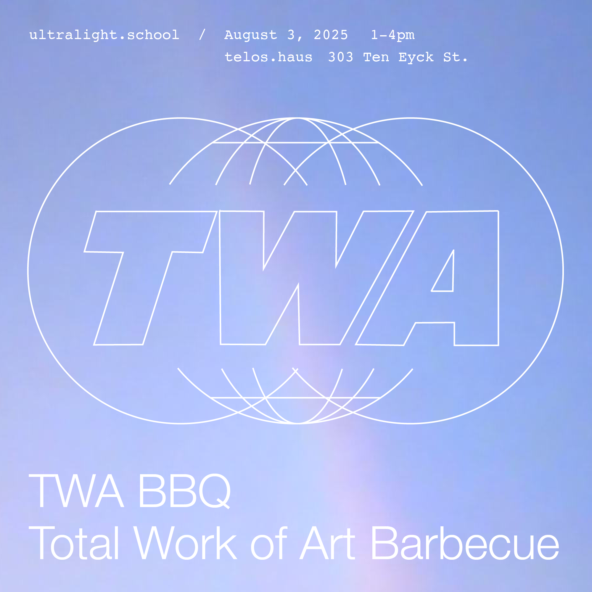 After seven weeks of explorations, the class culminated in a final “TWA BBQ,” where a barbecue gradually shapeshifted into participant temporal encounters, including: board meetings, launch parties, movement exercises, product demos, screenprinting, readings, and live or interactive installations...